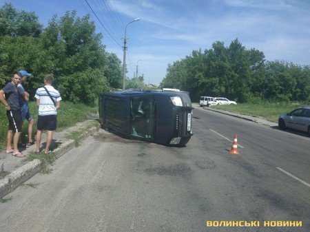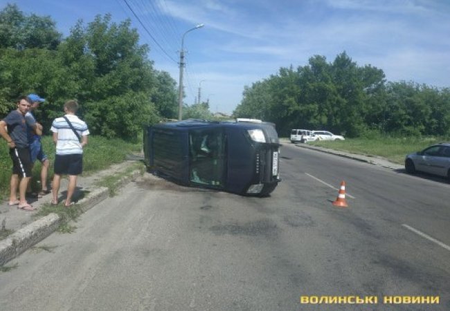 У Луцьку через зіткнення перевернувся мінівен. ФОТО
