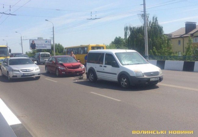 У Луцьку на мосту зіткнулись два легковики: рух ускладнений
