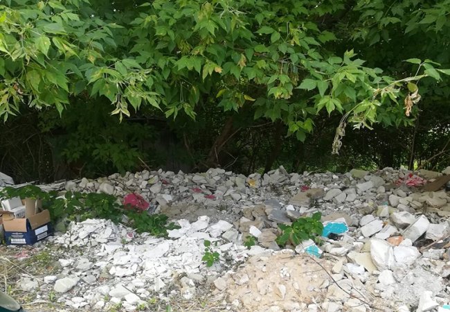 У центрі Луцька люди викидають будівельне сміття у кущі
