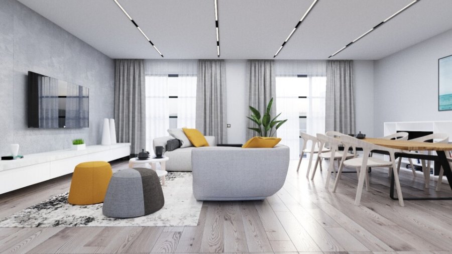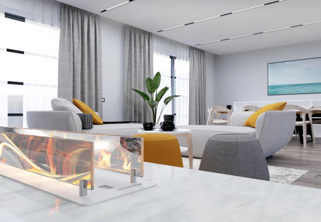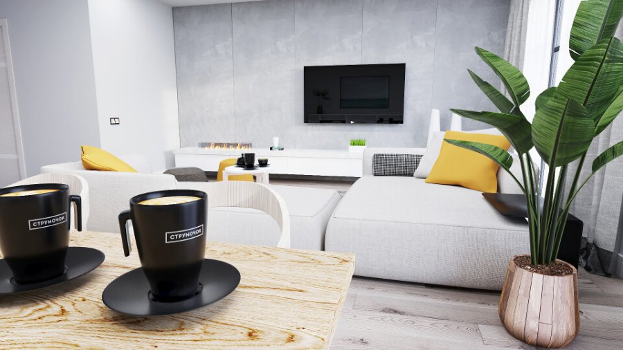Дизайнери Будівельної компанії "Інвестор" розробили, як можна облаштувати саме таку вітальню: світлу, стильну, розділену на кілька зон - відпочинкову та для прийомів їжі. Такий дизайн можливий у котеджі житлового комплексу "Струмочок", де простора вітальня - площею 33 квадрати.
