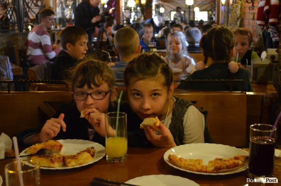 Для дітей влаштували частування піцою та морозивом. Опісля гостей іграми розважали аніматори. Загалом весело провели час з друзями близько сотні дітей початкових класів.