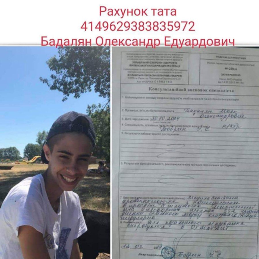 У юного лучанина Марка Бадаляна виявили злоякісну пухлину мозку. Небайдужих благають допомогти зі збором коштів на лікування.