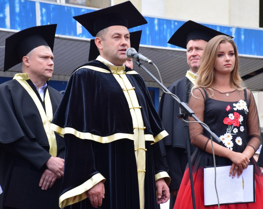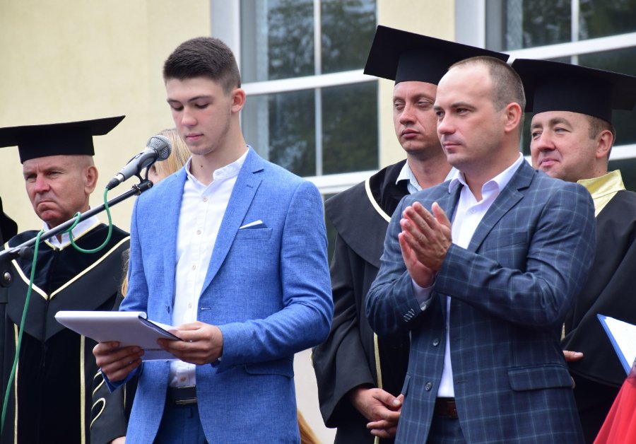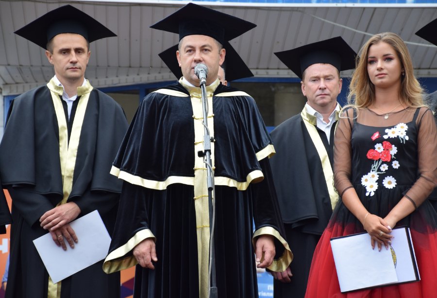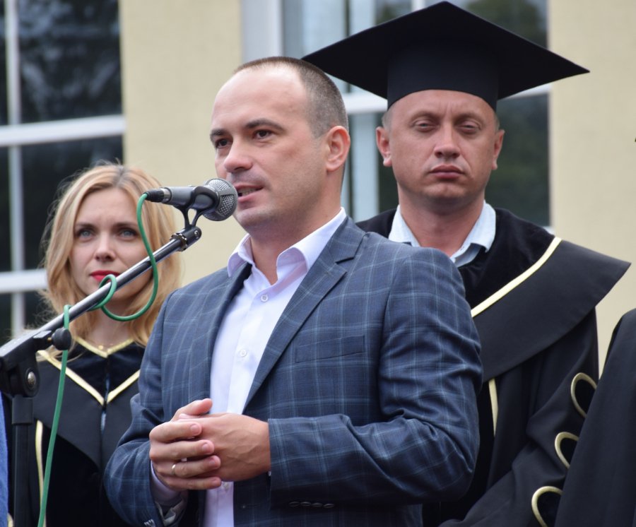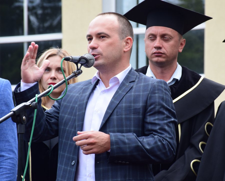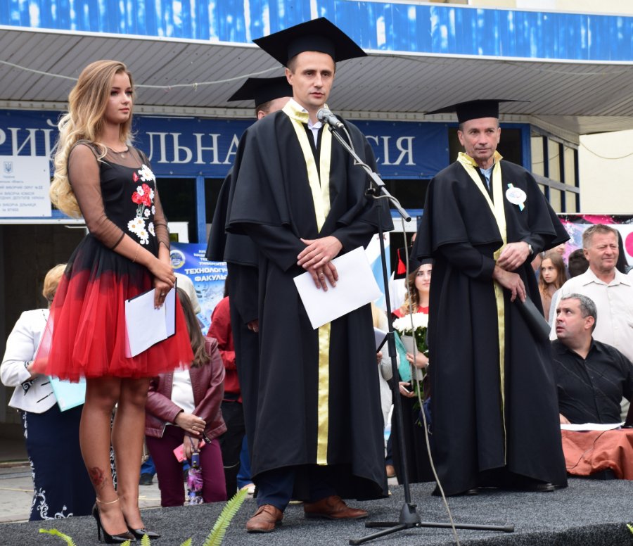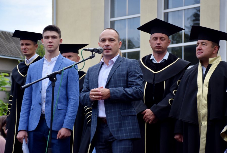 «Щиро вітаю випускників нашого рідного Технічного університету з цим хорошим святом. Зовсім нещодавно і сам стояв на такій же лінійці, як ви сьогодні. Теж було трепетно, теж із особливими емоціями. Так, отримання диплома – це своєрідний фініш. Але! Ставте максимальні цілі, утверджуйте все те, що ви отримали в університеті і реалізовуйте себе по життю.
