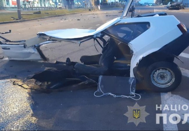 У Харкові в ніч проти неділі, 14 липня, зіткнулися автомобілі BMW і ВАЗ 2109. Внаслідок аварії один транспортний засіб розірвало на дві частини.