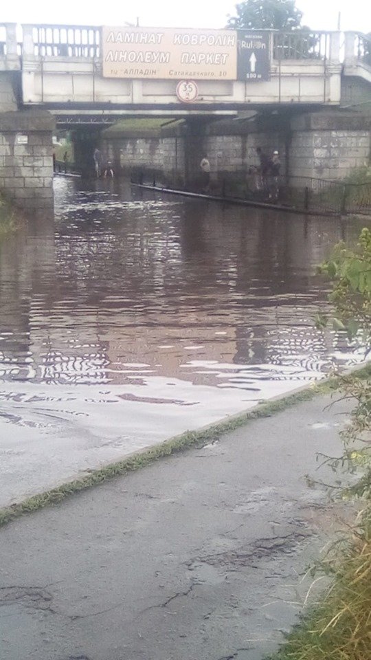 Зокрема, Ірина Хомич виклала світлину, з якої видно, що вода повністю покрила дорогу і бордюри на тротуарі.