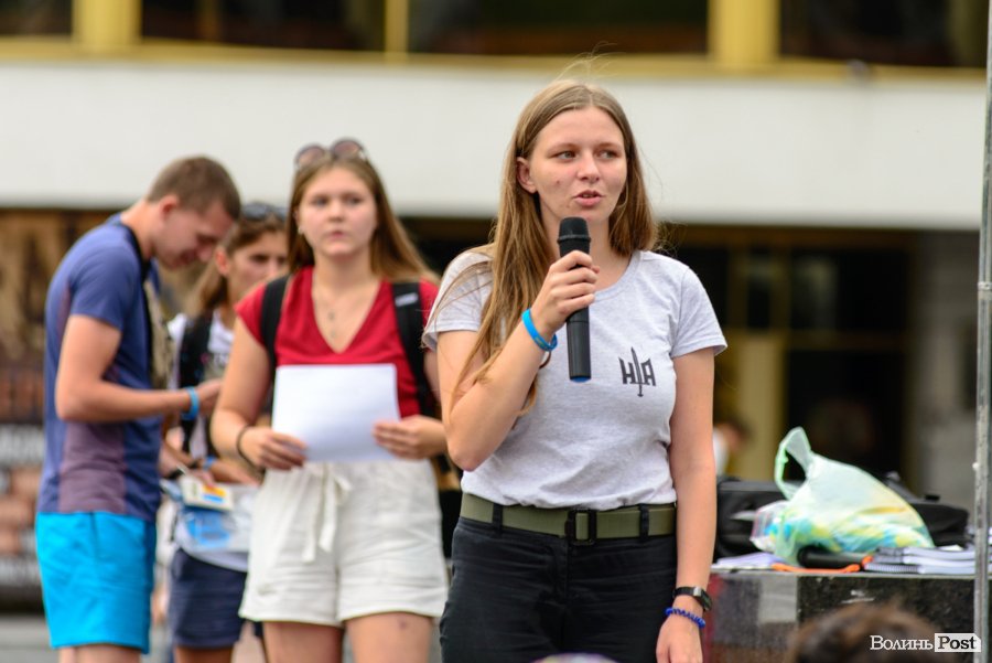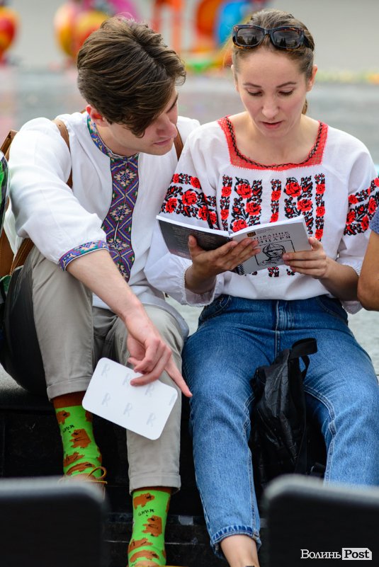 На імпровізованій сцені, яку встановили під пам'ятником Лесі Українки, виступали відомі лучани. Зокрема завітала привітати усіх зі святом активістка Юлія Євпак.