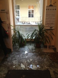 Місце події оточене поліцією. У розташованих поблизу будинках вибило скло. Частково постраждала також будівля Національного театру.