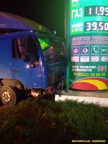 Зіткнення було настільки сильними, що у Audi спрацювали подушки безпеки. Внаслідок ДТП фура в'їхала у інформаційне табло заправки.