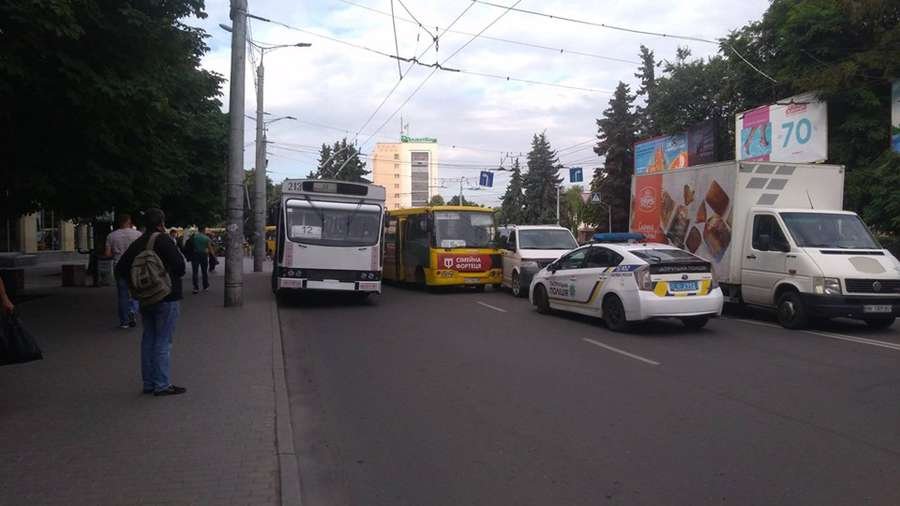 У центрі Луцька 17 липня сталася аварія за участю маршрутки і автомобіля.