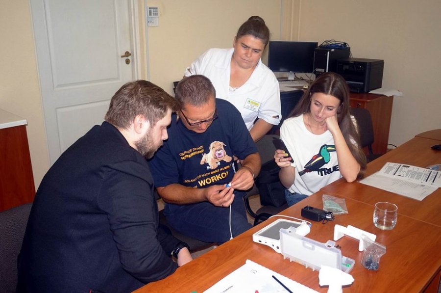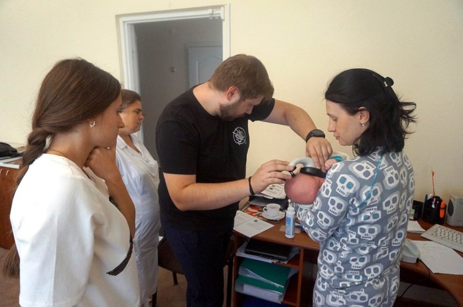 Представник фірми "Баттертон" з Києва, спеціаліст зі слузопротезуванню Олексій Петрученко провів налаштування Отоакустичної емісії та підготував прилад для практичного використання лікарями.
