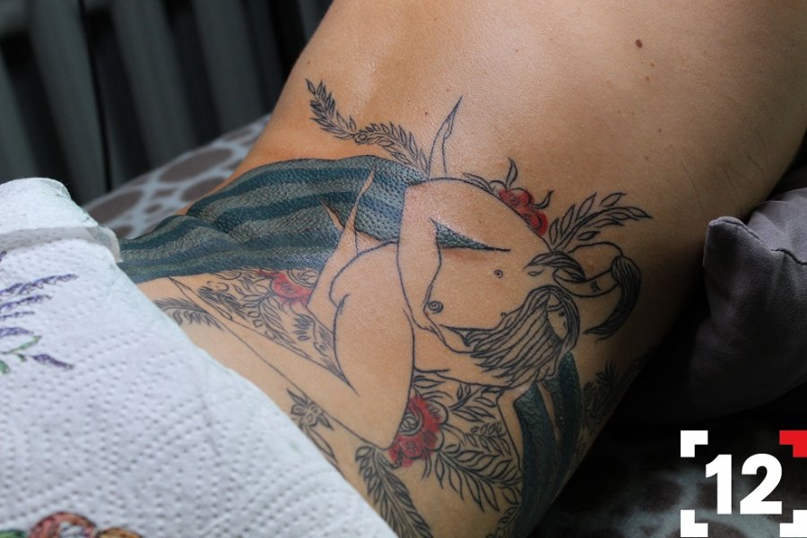 “Цей ескіз безкінечний. Його можна розмальовувати, домальовувати, продовжувати сюжетну лінію. Ескіз Марічки – це її індивідуальність. Також вона попросила втілити деякі художні моменти, наприклад, зміщення від контуру кольорових плям. Взагалі вона герой, бо витримала. Тату на спині – це доволі боляче, бо близько знаходяться кістки”, – розповіла тату-майстриня з “CactusTattoos” Юлія Лук’янчук.