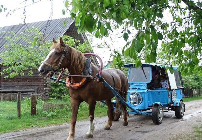 У селі Брунетівка Старовижівського району Олександр Бондар змайстрував карету, яка возить малюків до дитсадка і в школу.