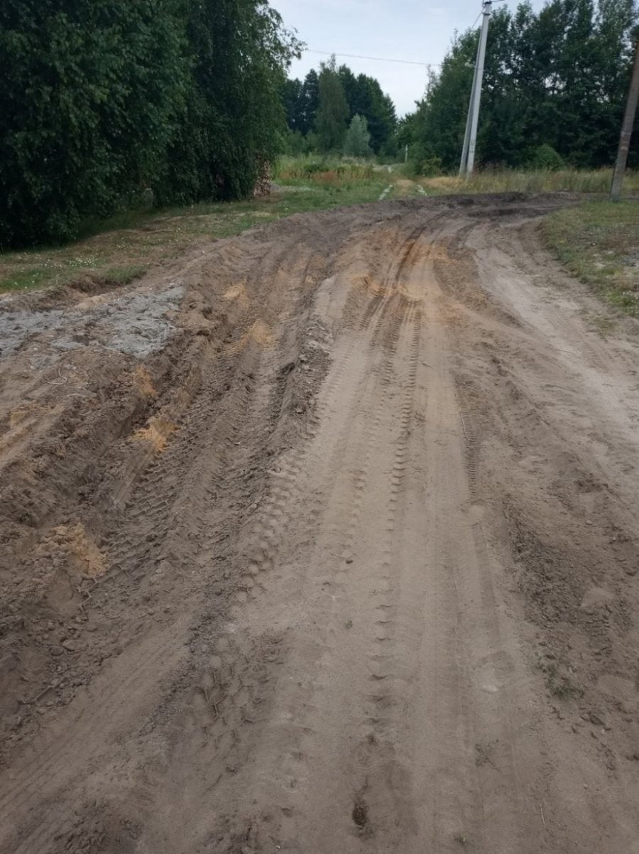 Зараз багатотонна вантажівка дорогу знову розбила. Окрім того, сам же водій вантажного автомобіля, щоб не застрягнути у піску на дорозі, почав їздити під вікнами будинку на приватній земельній ділянці одного з жителів вулиці, бо там, бачте, не було паркану. Власник будинку змушений був на цьому місці поставити свого буса, аби завадити вантажівкам їздити по його приватній земельній ділянці.