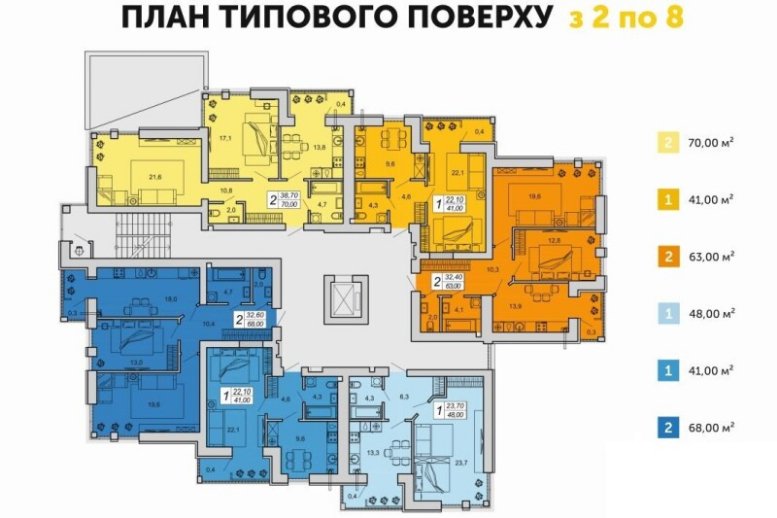 Квартири площею 68 квадратних метрів, розташовані на дев'ятому і десятому поверхах, мають ціну 14 500 грн за один квадратний метр.
