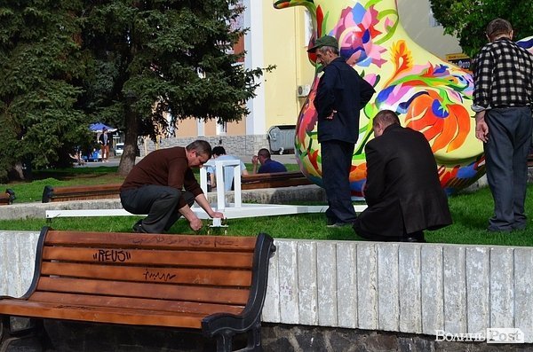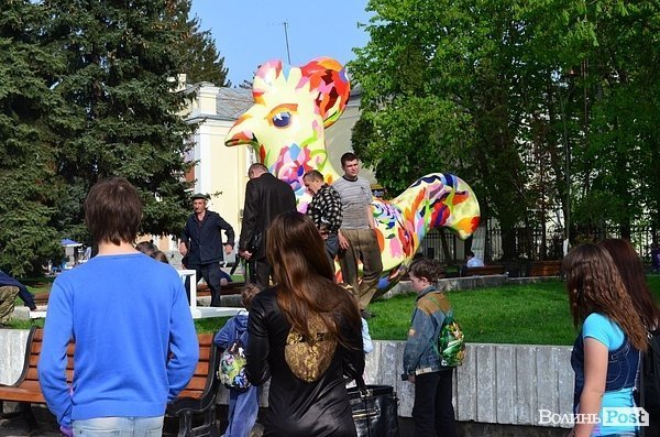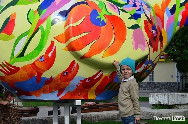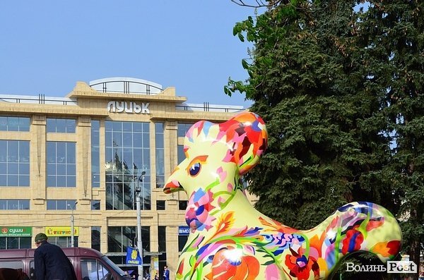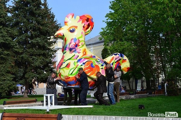 У центрі Луцька, на Театральному майдані, змонтували величезну скульптуру, розмальовану художниками.