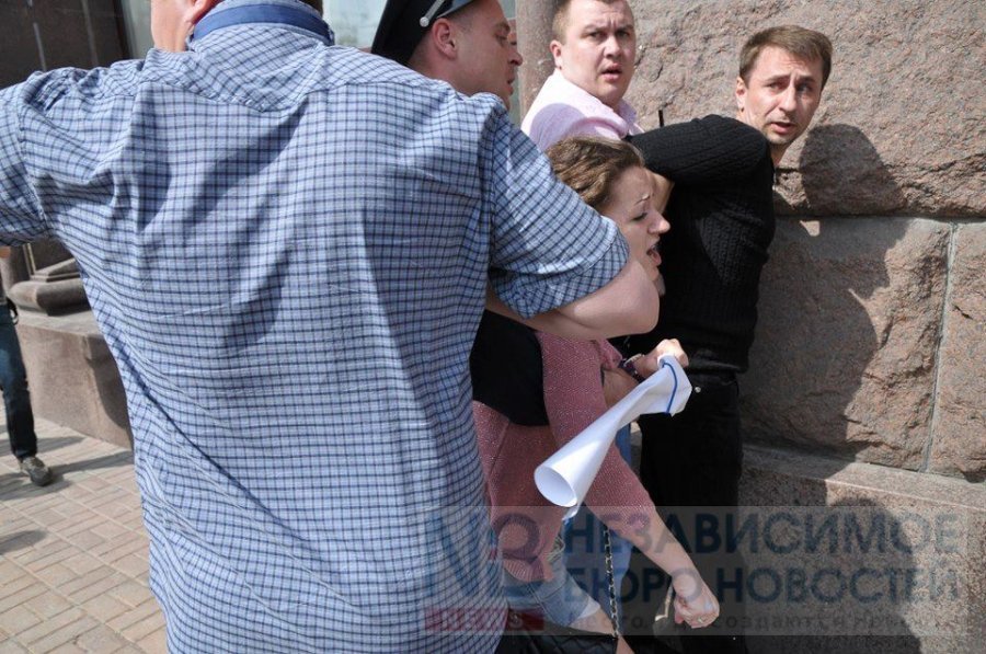 Двох із «купрівців» вивели під руки, а одну активістку правоохоронці винесли на руках. При цьому руки дівчини були в жовтій і синій фарбі. Цей інцидент не зупинив ходу.