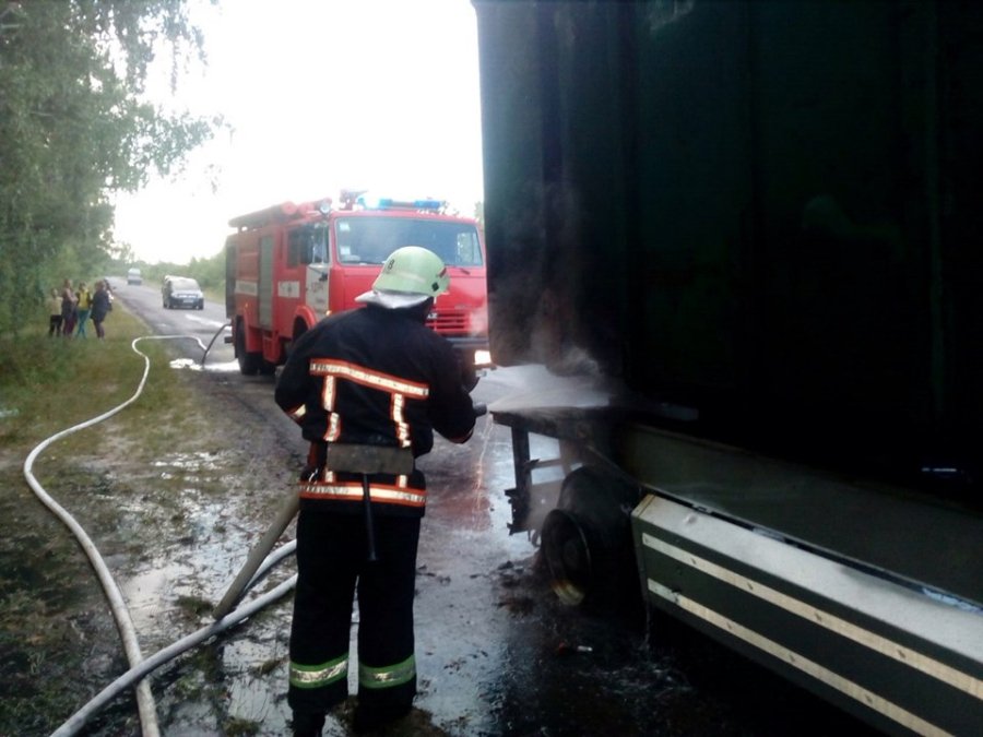 А о 20:10 рятувальники ліквідували загоряння прицепу вантажного автомобіля на трасі Камінь-Каширський - Ковель поблизу с. Нуйно.