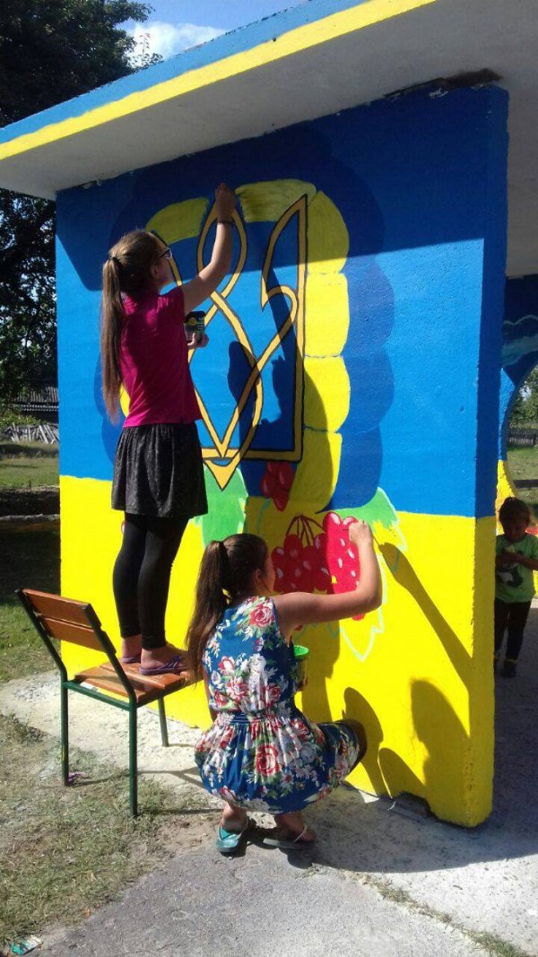 У селі Житнівка Камінь-Каширського району одинадцятикласниці креативно розмалювали місцеву зупинку.