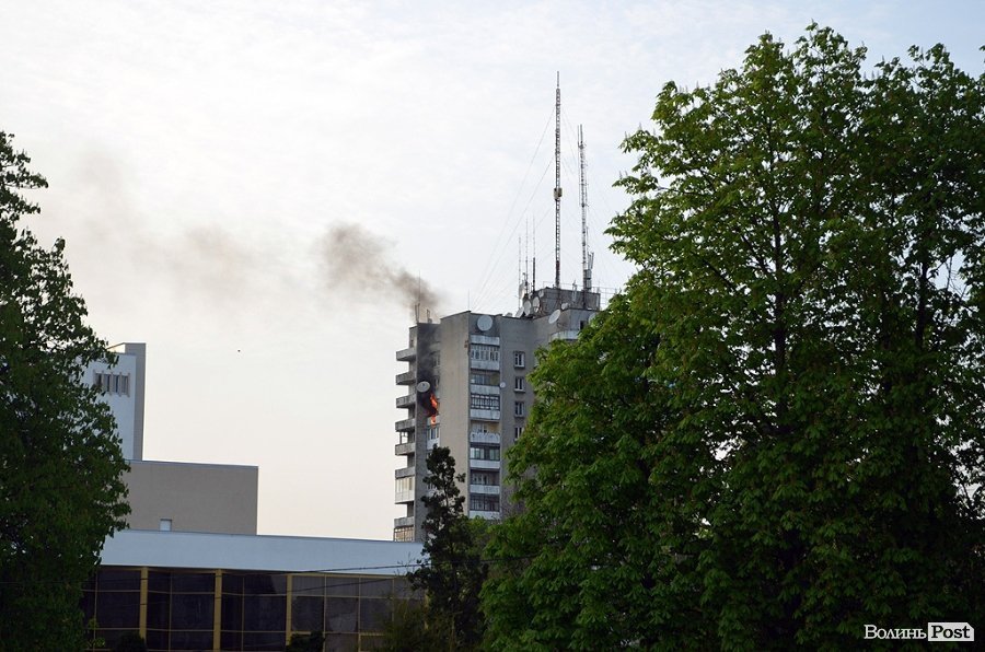 Увечері 2 травня горів один з найвищих будинків Луцька - 16-поверхівка біля готелю "Україна", що в самому центрі міста.