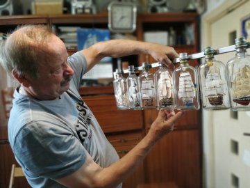 Майстер з Волині будує мініатюрні кораблі у пляшках. ВІДЕО