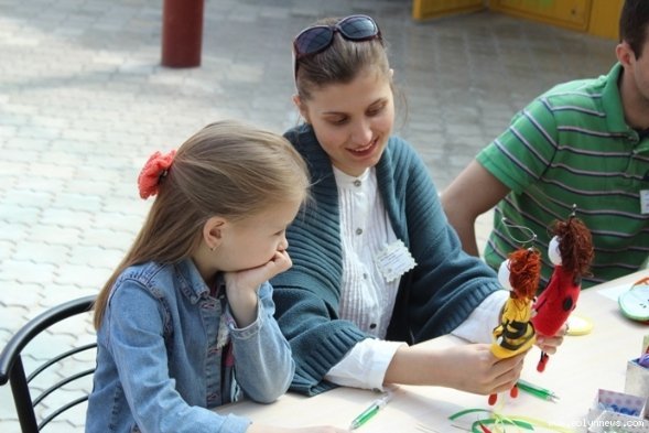 Спочатку вироби викроювали, потім зшивали та декорували, і за годину у руках кожного був чудовий подарунок. Захопилася справою навіть шестирічна Соломійка, яка прийшла разом із сестрою. Задоволені лишились всі, оскільки процес декорування відбувався у дружній та творчій атмосфері.