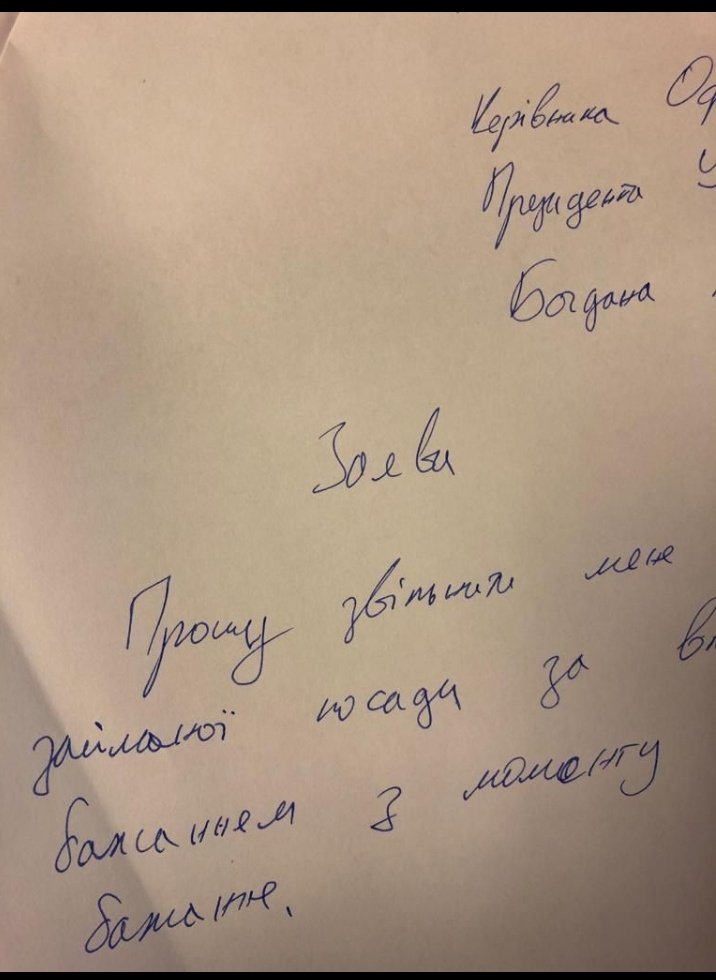 Про це повідомило джерело видання «Інтерфакс-Україна», а «theБабель» опублікував фото заяви з дивним формулюванням прошу звільнити «за власним бажанням з моменту бажання», - пише "Громадське".