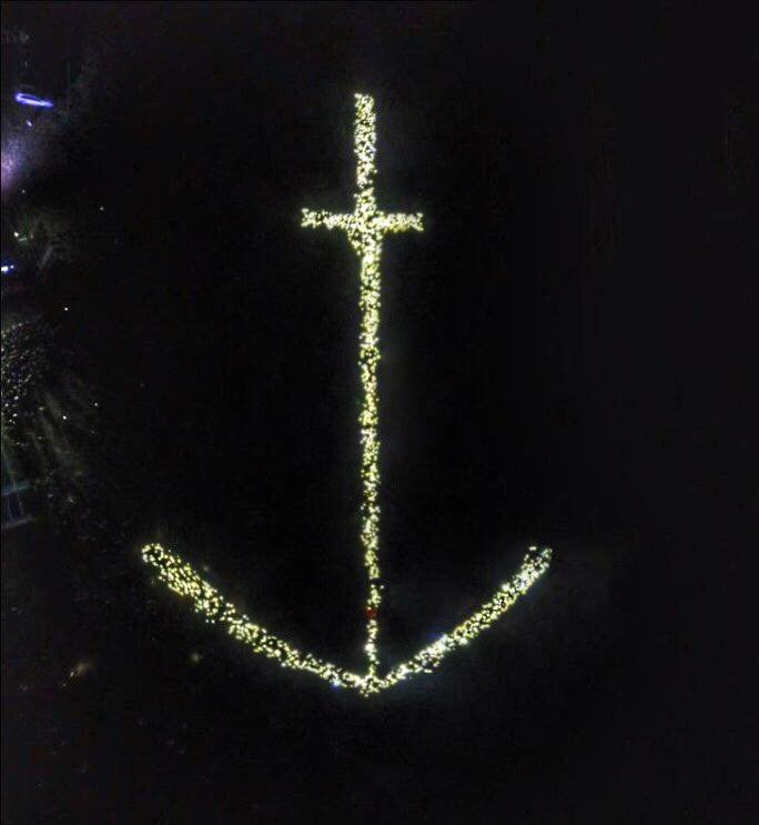 Багато бандерштатівців утворили символічний якір світлом ліхтариків. Фігуру сфотографували дроном з висоти пташиного польоту.
