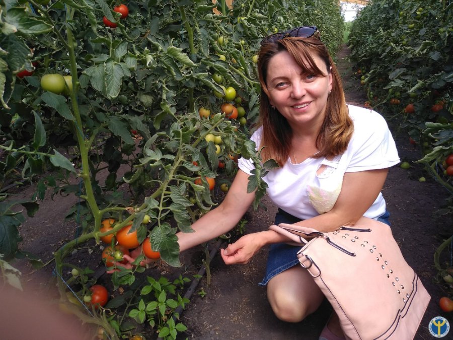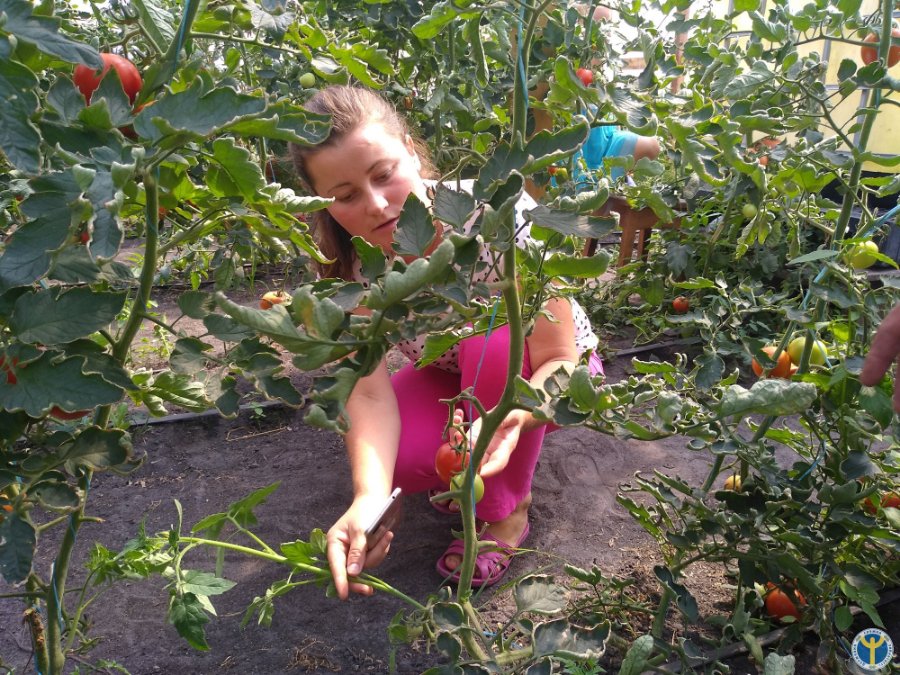 Оксана охоче розповіла: «Врожаї, зібрані з півтори тисячі кущів помідор, висаджених у закритому ґрунті, тішать мене. Якщо добре вродило – хочеться і збирати, і збувати продукцію. З одного куща трьох сортів (Агіліс, Сім-сім, Чорний принц Голандської селекції) отримуємо 4-5 кг овочів».