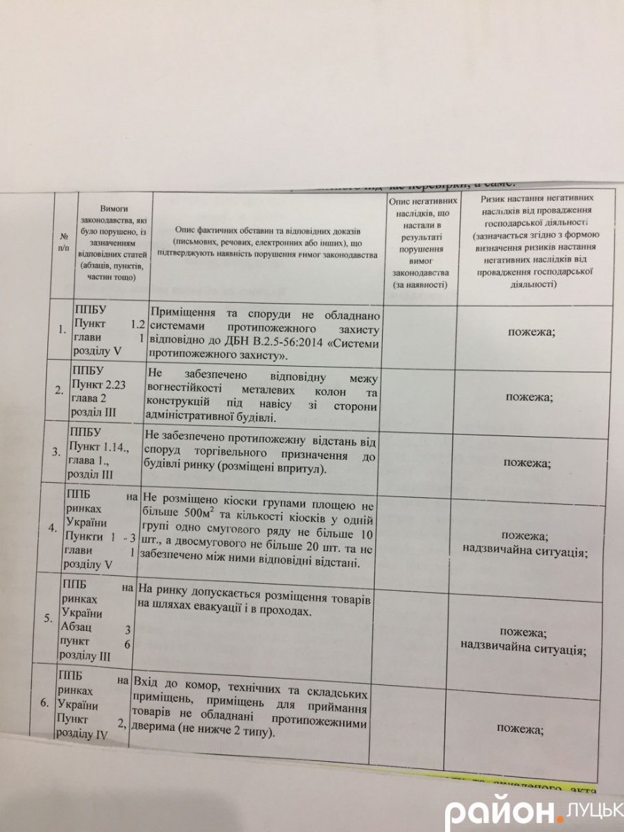 Перший заступник голови правління Волинської обласної спілки споживчих товариств Володимир Горгут зазначив, що управління ДСНС визначили шість позицій щодо функціонування ринку, котрими вони незадоволені і через які хочуть припинити експлуатацію ринку.