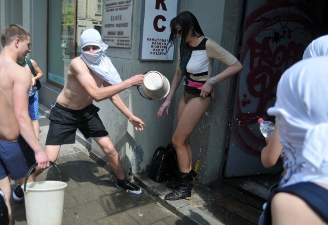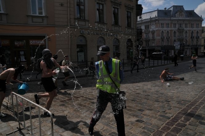 «Жертвами» хуліганів стали не лише дівчата, деяким з яких задирали спідниці, а й чоловіки: «поціновувачі» традицій облили водою працівника ДАІ та міліціонерів.