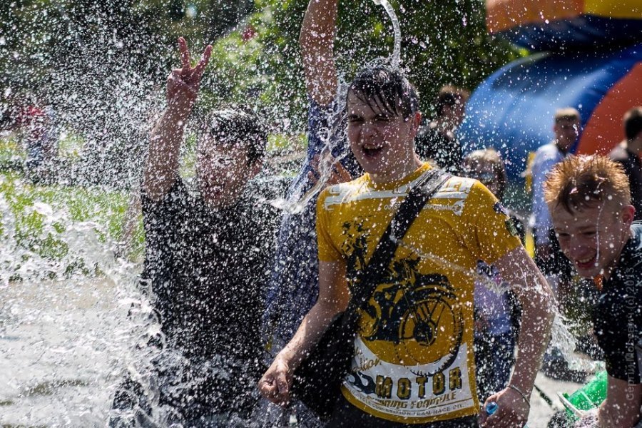 Цього разу зібралося дві сотні хлопців і дівчат біля драмтеатру. Втім, одразу поливатись не вдалось ‒ всі міські фонтани були вимкнені. Молодь обʼєдналася в колону і пройшла центральними вулицями Івано-Франківська до міського озера. Там і відбулись основні «баталії». Далі колона вирушила до «Білого будинку», де облила вікна його вестибюлю.