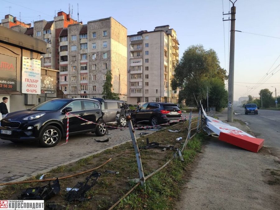 Близько третьої години ночі 12 серпня 20-літня водійка кросовера BMW не справилася з керуванням і наїхала на острівець безпеки, після чого машина "влетіла" на парковку нічного клубу, пошкодивши чотири припарковані автомобілі. Про це йдеться на сторінці патрульної поліції Івано-Франківської області.