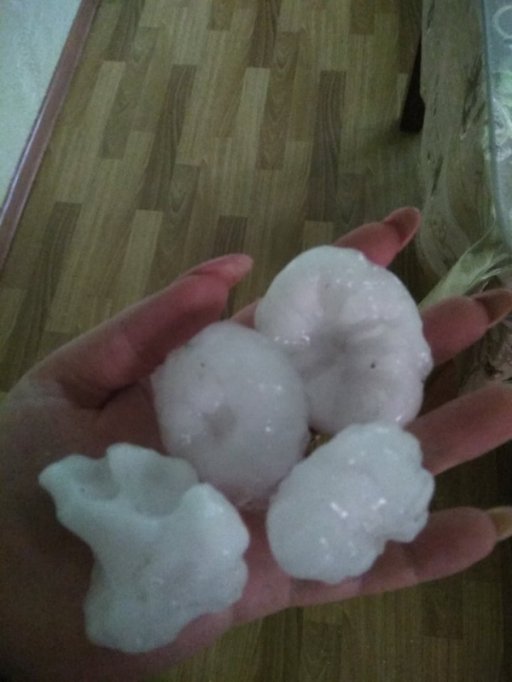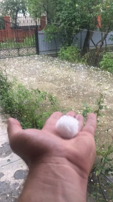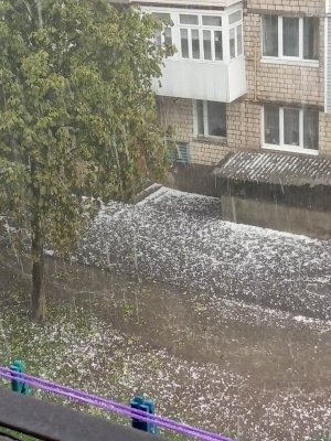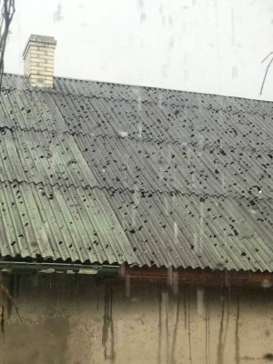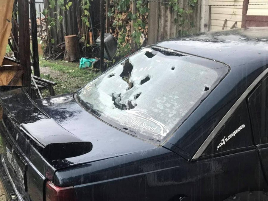 За повідомленням місцевих мешканців, град розміром з куряче яйце побив лобове скло автомобіля, шибки житлових будинків, а також пошкодив дахове покриття низки будівель міста.