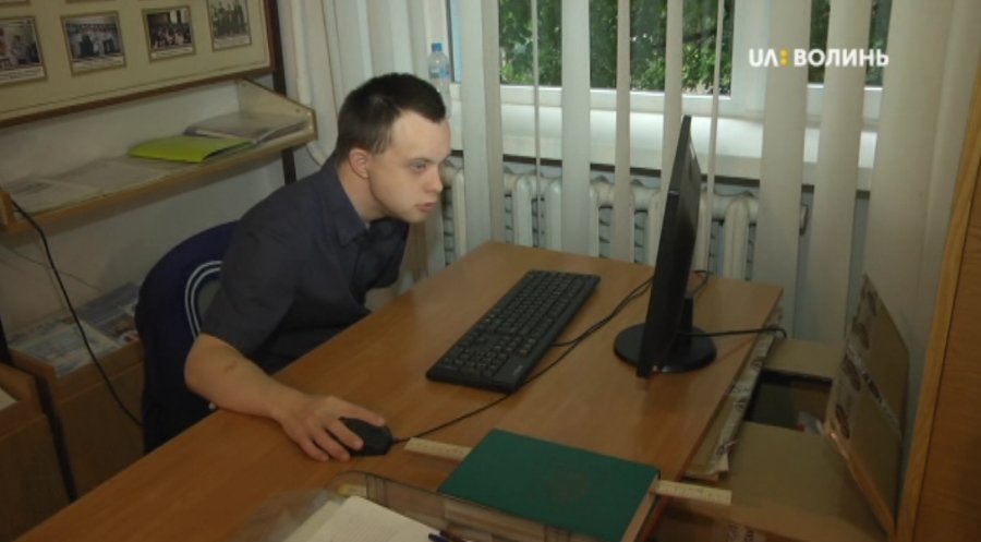 Показали перші робочі дні лучанина, який першим в Україні з синдромом Дауна здобув вищу освіту. ВІДЕО