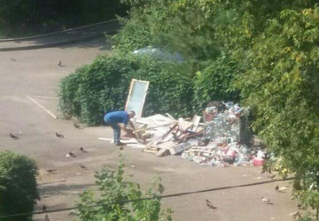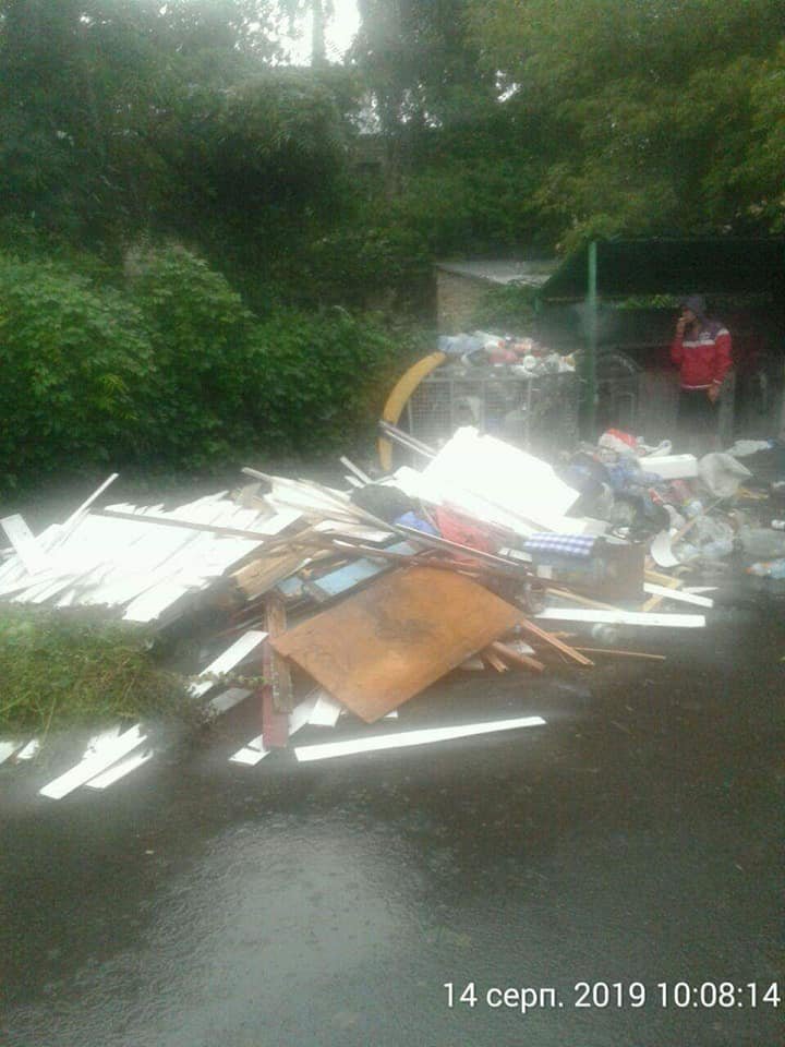 "В ході реагування на звернення інспектором департаменту було виявлено, що один з мешканців вказаного будинку здійснюючи заміну вікон та дверей у квартирі, усе сміття викидав прямо біля будинку а згодом утворив сміттєзвалище біля сміттєвих контейнерів.