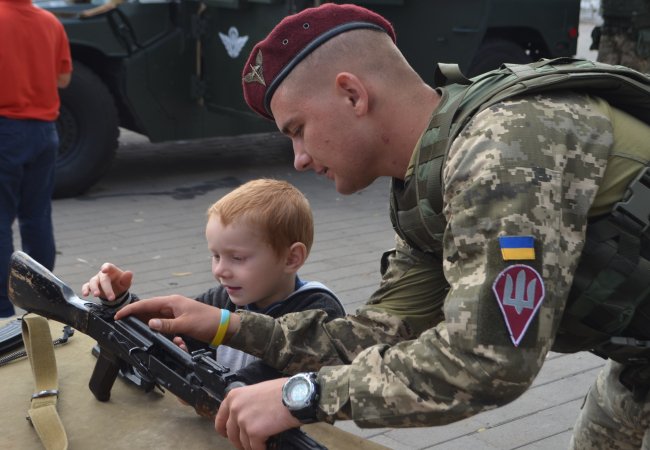 Окрім легендарного військового автомобіля, можна було також потримати і відчути вагу ручного протитанкового гранатомета, ручного протитанкового кулемета або ж із допомогою десантників розібрати модернізований автомат Калашникова. Охочих зібралося багато, в основному це були дітки, які навіть вилазили на кулеметну систему автомобіля Humvee.