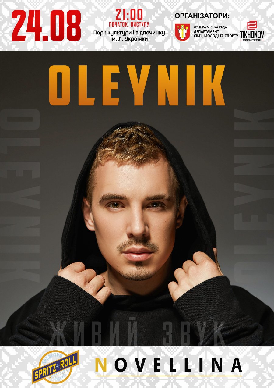 У Луцьку 24 серпня OLEYNIK презентує як нові, так і вже всіма улюблені та популярні пісні на сцені у Центральному парку культури та відпочинку ім. Л. Українки о 21:00.