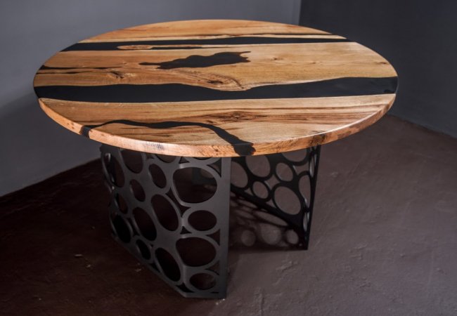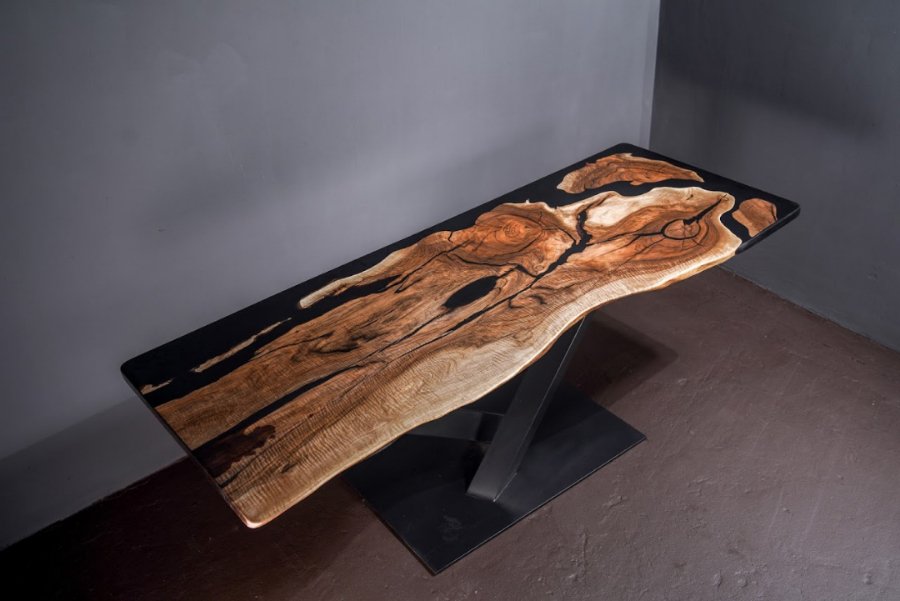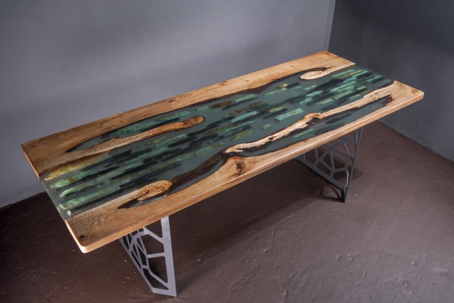 Такі дизайнерські столи ручної роботи користуються популярністю серед людей, що живуть в сучасних реаліях мегаполісів, адже прагнуть відчути близькість з природою. При виготовленні таких столів стільниці заливаються епоксидною смолою та декоруються дерев'яними та металевими ніжками. Візуально стіл нагадує гірську ущелину, в улоговині якої протікає річка.