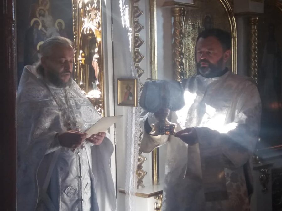 «Служать: благочинний прот. Віталій Дуда з духовним чадом діяконом Ростиславом Валіхновським! Слава Богу! Зі святом Вас!» – йдеться у дописі.