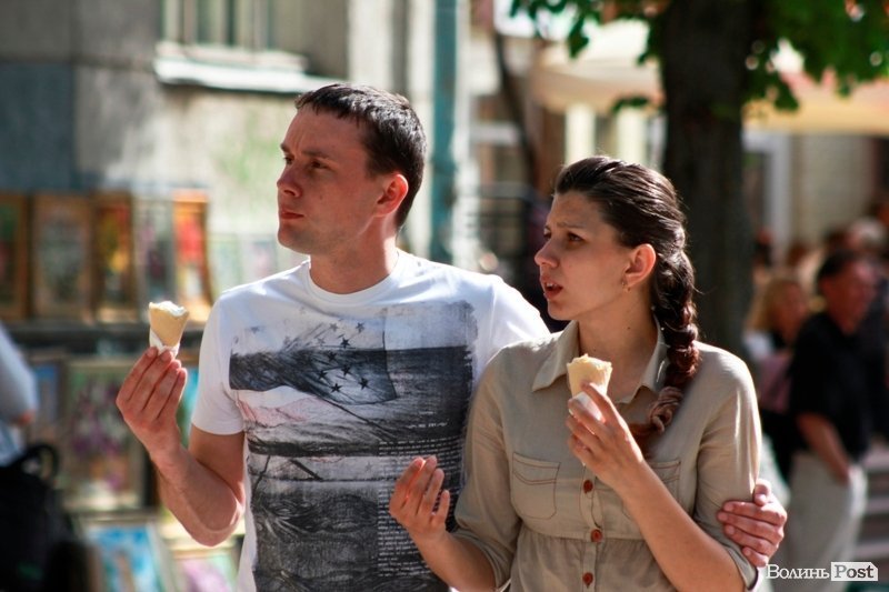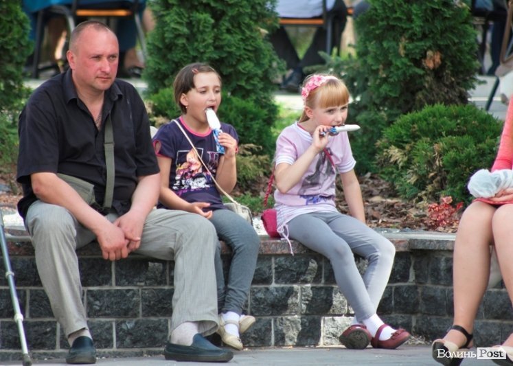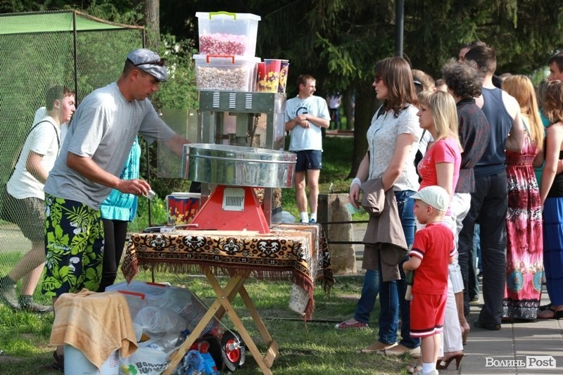 Відходивши у святковій ході і наївшись каші, лучани взялися за типові розваги "вихідних на асфальті": їли морозиво і солодку вату, пили пиво і соки, гуляли, пілкувалися і розважалися.