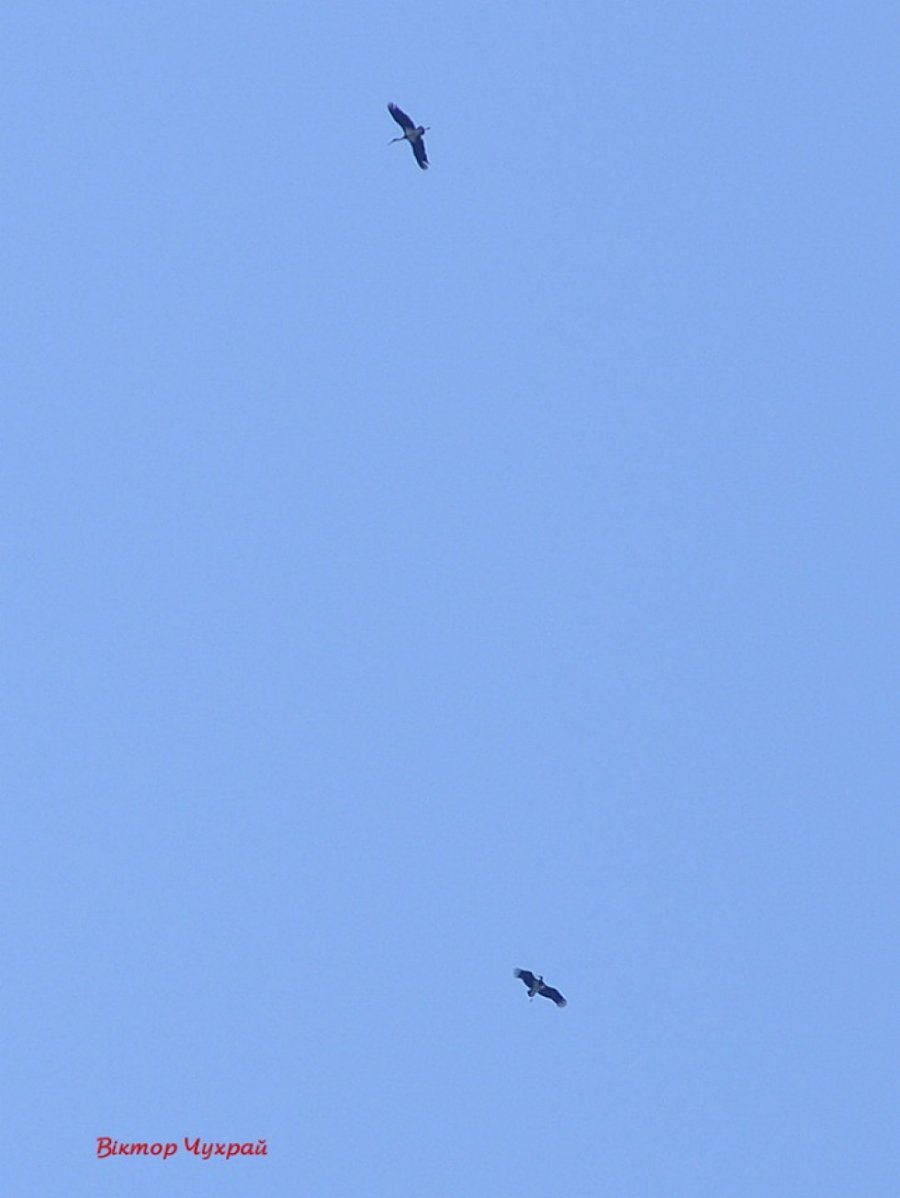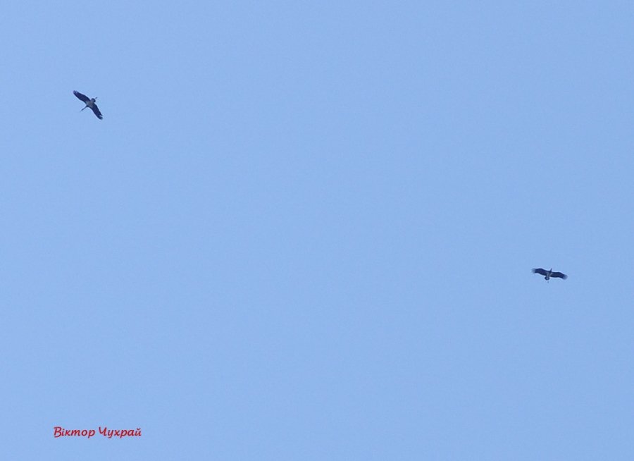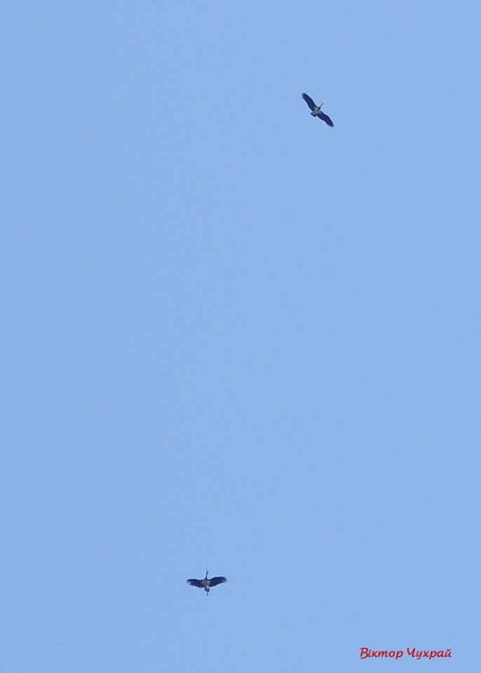 Волинський фотограф Віктор Чухрай зазнімкував пару рідкісних чорних лелек, які пролітали над Луцьком.