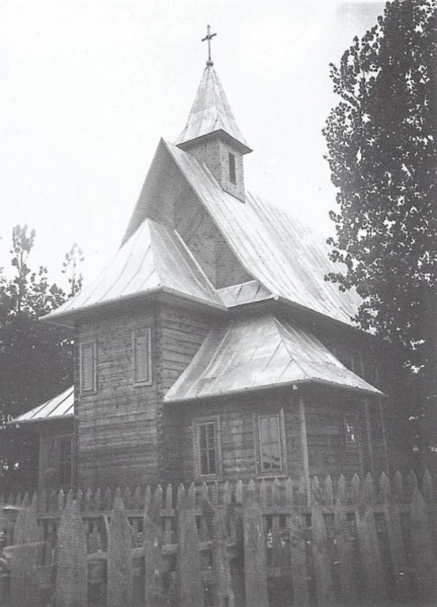 Фото також вміщене у польському друкованому виданні «Koscioły i klasztory rzymskokatolickie dawnego woewódstwa Ruskiego» («Римо-католицькі церкви та монастирі колишньої Руської губернії»), виданому в Кракові в 2014 році. Культова споруда виготовлена з дерева, покрівля – під бляхою, загорожа – дерев'яні штахети.