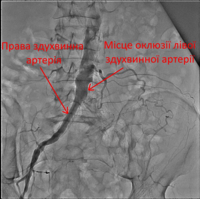 В результаті дослідження у пацієнта виявили повну оклюзію (закупорку) лівої здухвинної та лівої стегнової артерій.