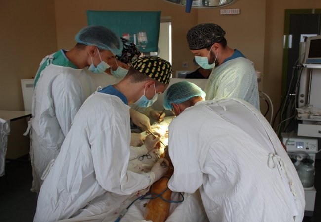 Так, бригада судинних хірургів та анестезіологів провели складну операцію: перехресне здухвинно-стегнове шунтування та стегново-підколінне алошунтування (штучною судиною) зліва. За рахунок нових сполучень між судинами відновили кровотік в нижній кінцівці.