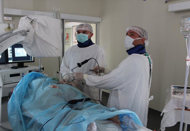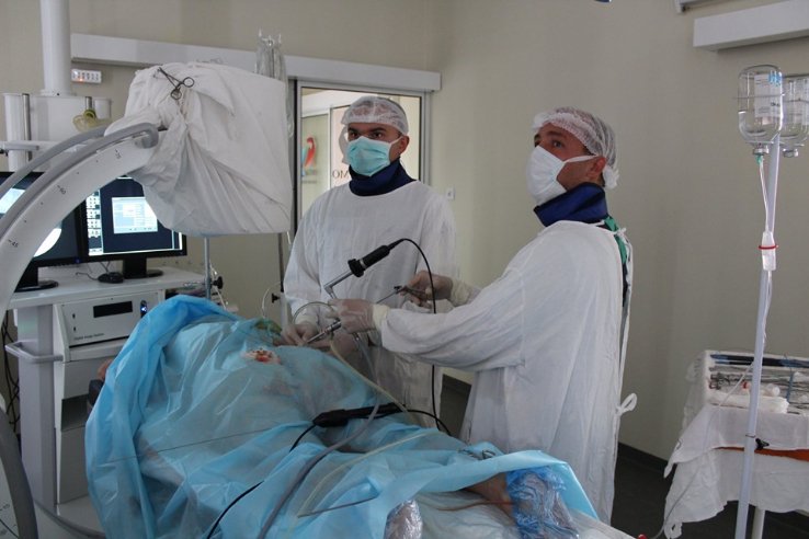 Команда урологів успішно провела черезшкірне дроблення та видалила камінь повністю.
