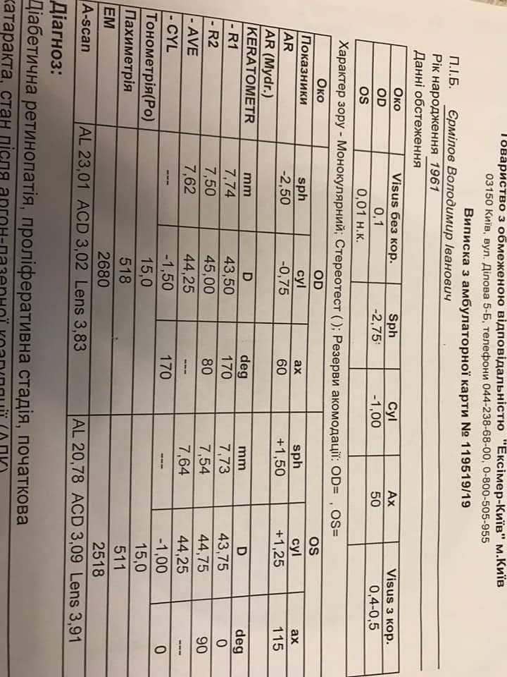 Володимир Іванович пройшов обстеження в Києві і там йому подарували надію, що зробивши операцію, він знову бачитиме, але.... Ця надія перекреслилася сумою за операцію + реабілітацію ціною 65000грн., яка для нього не лише непідйомна сума, вона є нереальна...