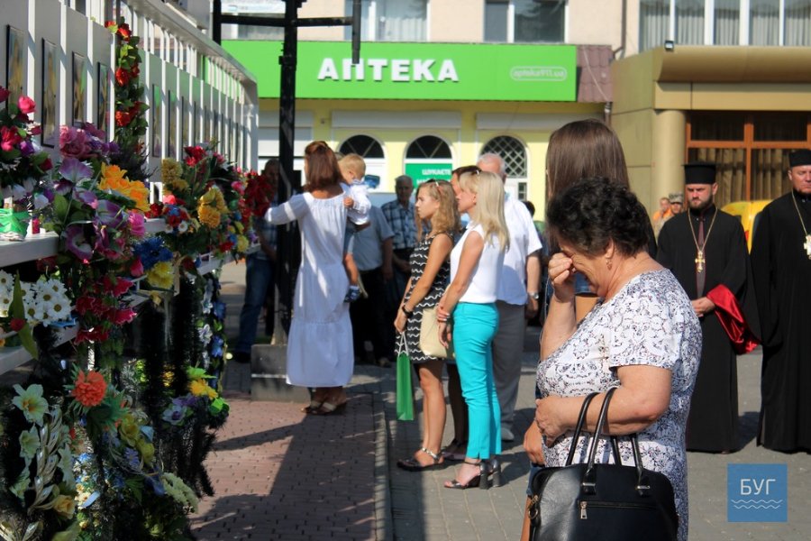 Біля дошки пам’яті загиблим учасникам АТО (ОСС) згадали усіх жителів міста та району, які загинули у ході війни та вшанували їх хвилиною мовчання. Відбулось урочисте покладання квітів. Також провели панахиду за упокій загиблих воїнів.