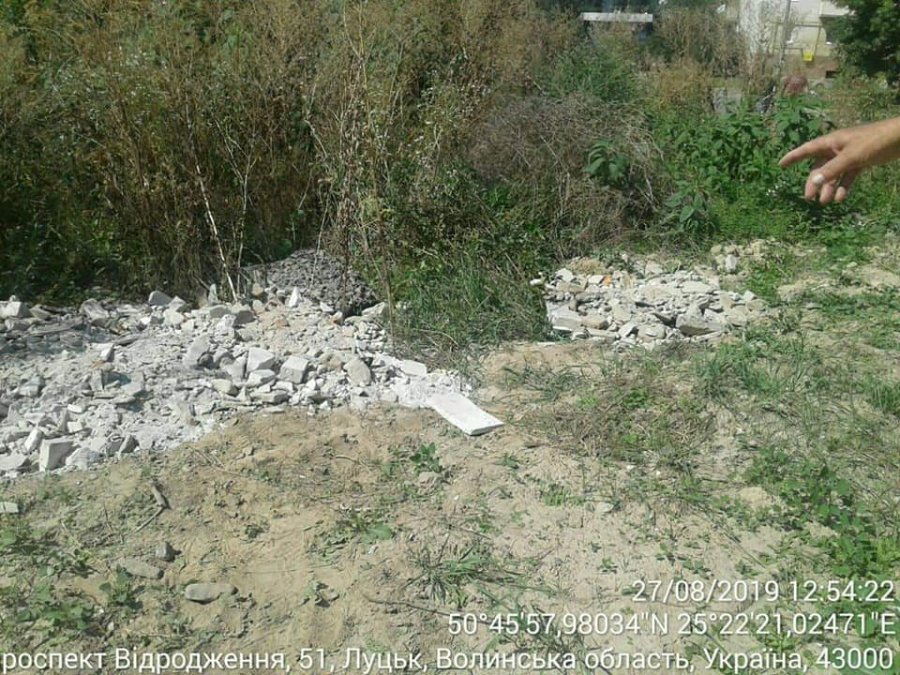У Луцьку будівельне сміття зі стоматполіклініки викинули просто на території загального користування.