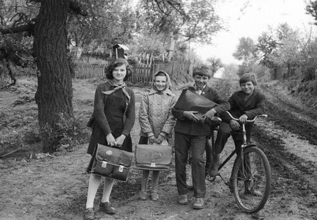 "Старенька чеська будівля школи і учні які учились у ній. Ще про ніякі шкільні автобуси, асфальтовані дороги, модний одяг і решту того, що мають наші діти ніхто і не думав, але хорший настрій завше був нами. Ці діти тепер уже дорослі, і можливо себе впізнають на знімках...Учитись ніколи легко не було, тільки чомусь тепер багато негативу, на жаль.." - написав Чухрай.