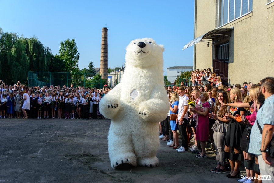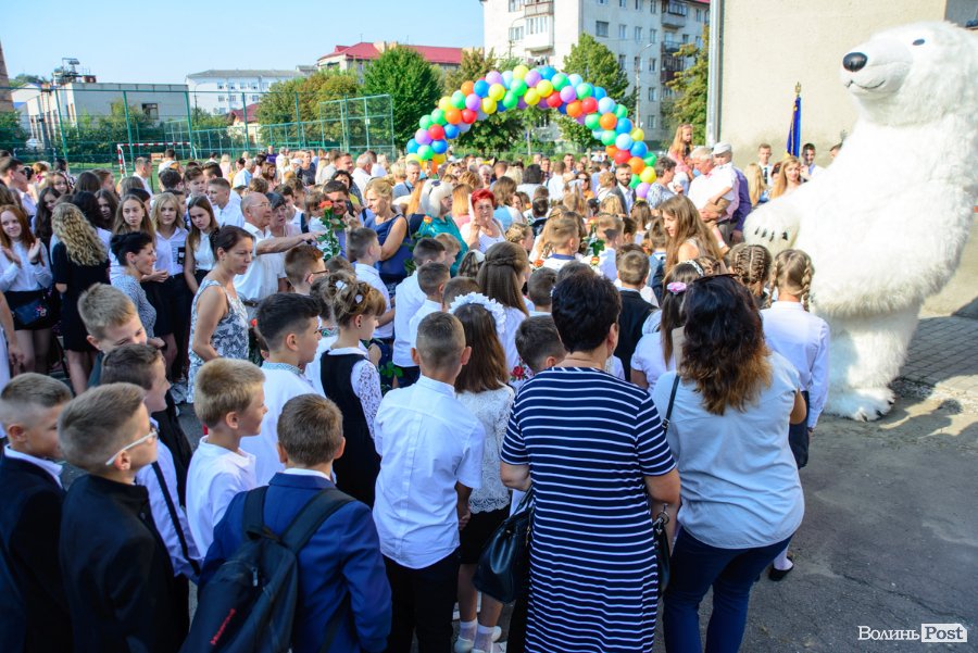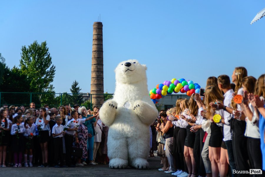 З нардепом і велетенським ведмедем, але без промов: перший дзвоник у луцькій школі №9. ФОТО